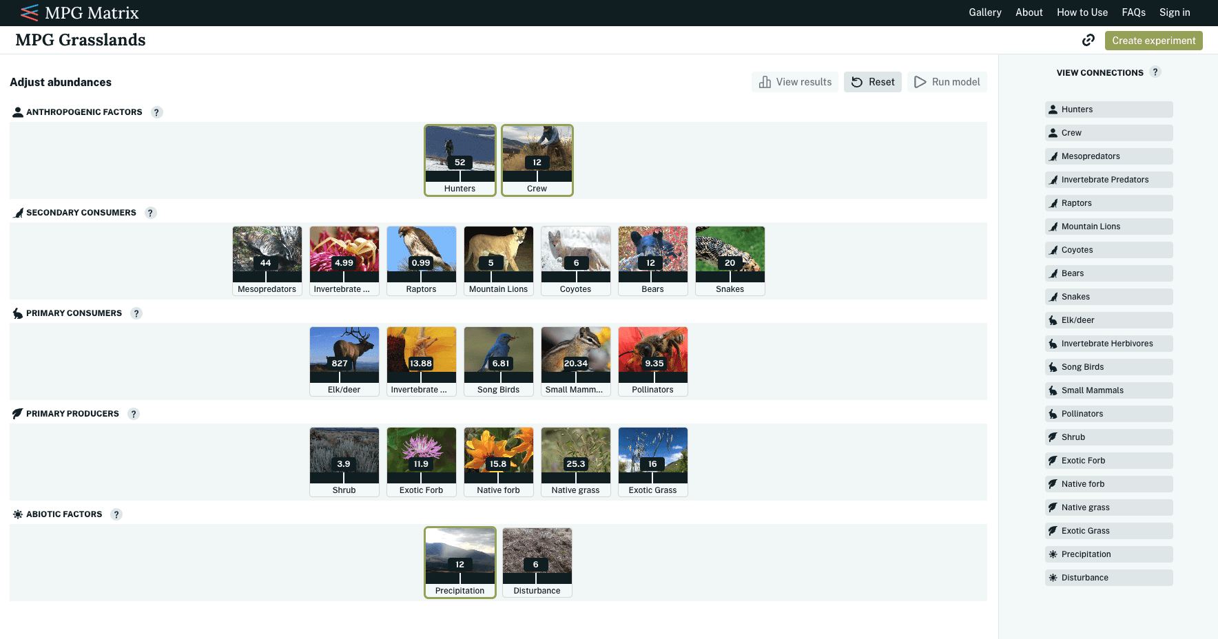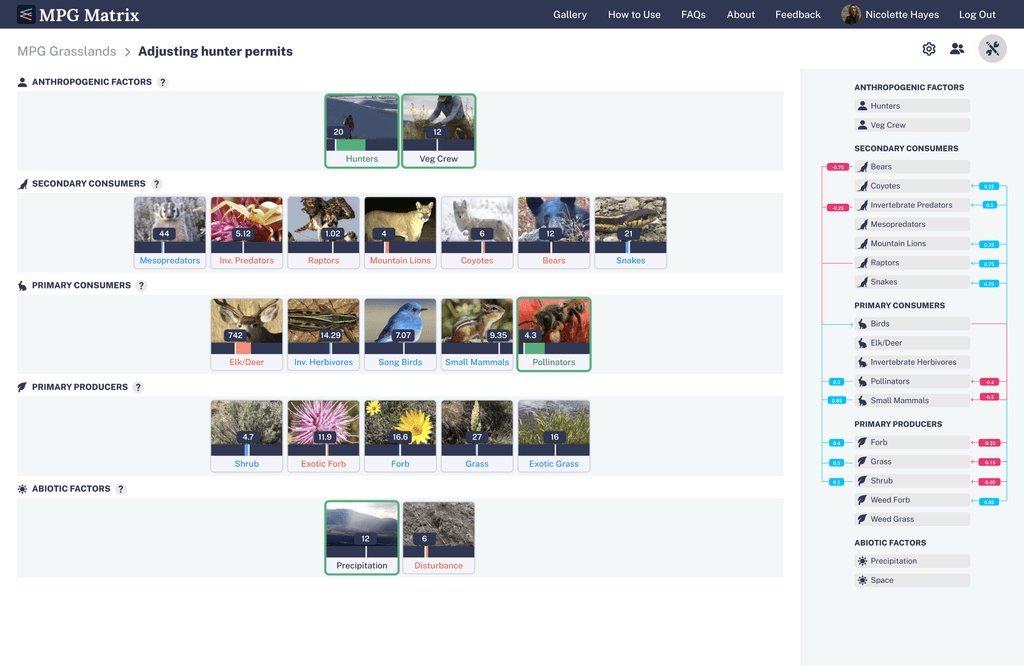 I designed an interactive web tool for MPG Ranch, which models ecosystems for better research and wildlife management planning as well as provides a new way for students to understand core ecological concepts.